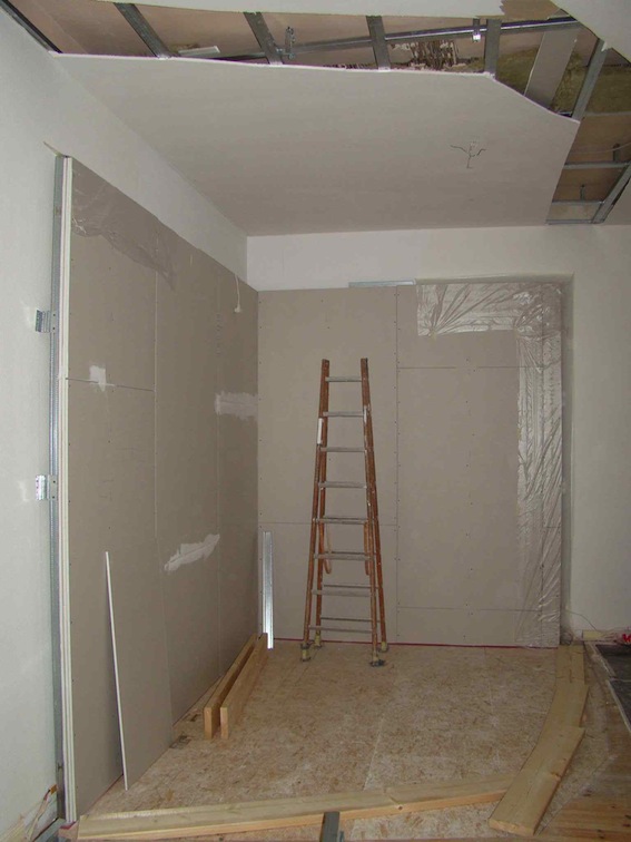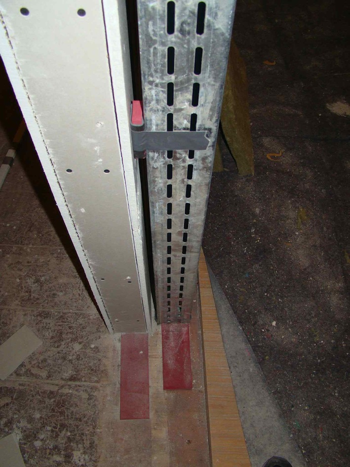 Und hier sieht man den ersten Raum mit zwei Seitenwänden, die in diesem Fall dreifach beplankt und 50mm Ständenwerk hatten: