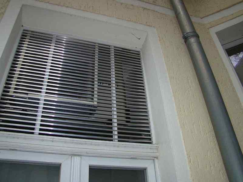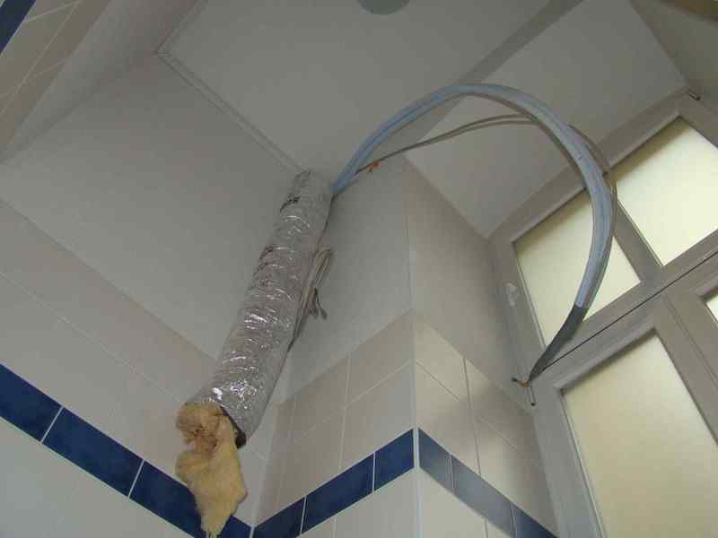 Bevor das Außengerät bei uns in 2,5m Höhe im Bad angebracht wurde, musste das obere Badfenster entfernt und durch ein Gitter ersetzt werden. Von Innen sah das dann so aus: