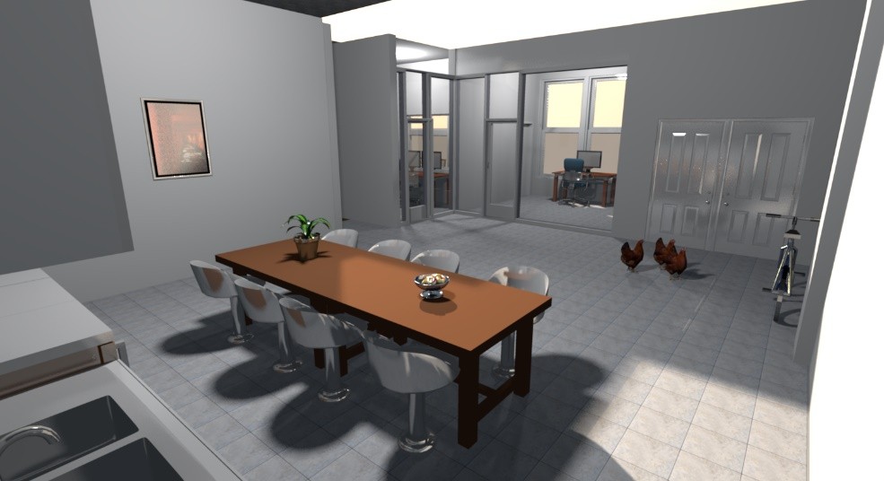 Abbildung 2„Sweet Home 3D" erstellt unswunderbar gerenderte Bilder - zumindest für den ersten Eindruck. Außerdem konnten wir bereits Mitarbeiter einfügen. Sie wollten unbedingt in Körnern bezahlt werden, sind aber nicht die reinlichsten ...