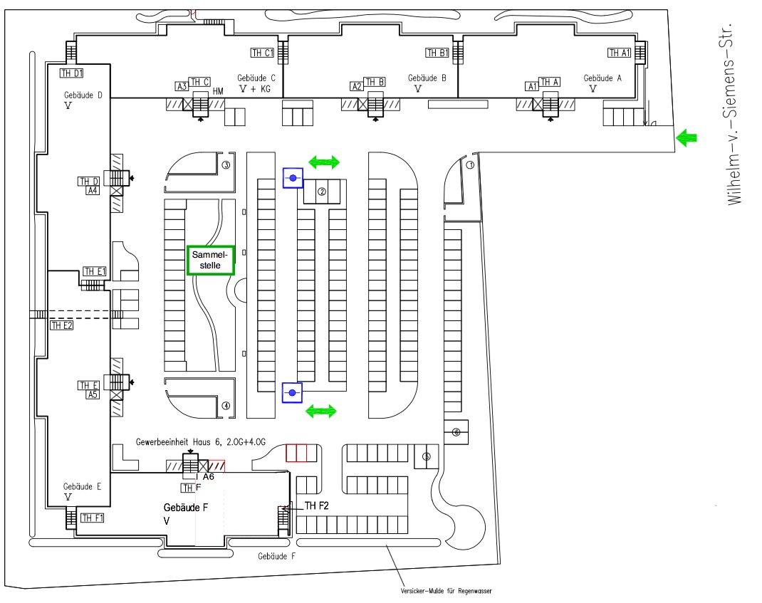 Das Thema Brandschutz ist ebenfalls nicht zu unterschätzen denn es gelten klare Regeln für eine ordnungsgemäße Umsetzung. Jedes größere Gewerbeobjekt benötigt einen sogenannten Brandschutzplan, welcher auf kleine Gewerbeeinheiten angepasst werden muss. Hierbei muss man diverse Eigenheiten beachten. Türen dürfen bspw. nicht in Fluchtwegen geöffnet werden – klingt trivial aber hat bei uns zu umfassenden Konzeptänderung geführt. So durften wir unsere angedachten Schleusentüren nicht mehr verwenden denn der davor liegende Gang war ein Fluchtweg. Nun werden wir Metalltüren mit einer Dämmung von 56 dB verwenden. Wer mehr über das Thema Brandschutz erfahren möchte kann sich auf der Website der „Berufsgenossenschaft Nahrungsmittel und Gewerbe" belesen, bitte hier klicken. Unser guter Draht zum Bauamt ermöglichte uns dennoch einen raschen Baustart – ein Hoch auf gute Architekten denn eine erneute Genehmigung hätte gut und gerne 6 – 12 Monate dauern können. Im Folgenden findet ihr den Brandschutzplan unserer Einrichtung. Die grünen Pfeile markieren die Feuerwehr-Bewegungsflächen. Blau eingezeichnet sind die Hydranten. Im nächsten Teil werden wir uns mit dem Bauteam sowie der technischen Studio-Ausstattung auseinandersetzen.