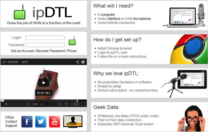 Ip DTL is a browser (Google Chrome) based IP solution. You just need a computer with Audio Interface a mic and a good internet connection. It is very easy. And: It`s for both worlds: Windows and MAC OS due to the total Browser integration.