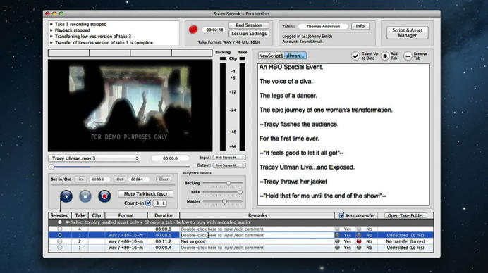 Sound Streak is a sequenzer based IP software. It not works in a browser. It`s more a taker system for voice over recording with picture option and ready to use for MAC OS and Windows. It also displays scripts, videos and all kind of information during recording. You dont need a DAW or and ISDN line. Sound Streak is not a „peer-to-peer“ connection, it rather acts as a local recording device. The resulting takes transferred “asynchronously.” That means audiofiles can be transferred without any compression or alteration over any broadband connection. SoundStreak captures and transfers uncompressed audio regardless of the bandwidth. It captures AIFF, WAV, or BWF at up to 96 KHz, 24-bit.