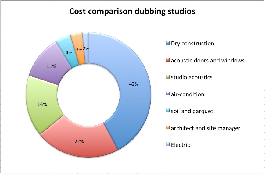Nous avons passé six mois à la recherche d'une entreprise de cloisons sèches qui non seulement surélevait les murs en plaques de plâtre, mais qui avait aussi de l'expérience dans la construction de studios de son. Cela n'est pas négligeable, car ce tronçon représente environ 40 % de l'ensemble des travaux de construction. Pour les différentes étapes de construction, nous avons fourni un petit aperçu des coûts. Ceci vous montre combien de dépenses vous pouvez/devez prendre en compte par domaine.
